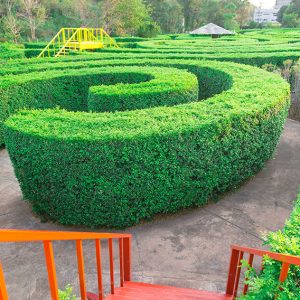 Maze gardens are wonderful additions to children’s gardens and botanical gardens. They commonly accompany formal garden and modern garden styles, but can be added to any landscape design. A maze garden made with tall privacy hedges is a wonderful way to provide plentiful private spaces for outdoor dining or meeting areas. Different types of hedges will provide different moods and textures to the landscape. For optimum appreciation, provide a high platform for an aerial vantage point or plant the maze garden outside a multi-story window! We firmly believe that hedge mazes and puzzle gardens can and should be used more frequently in today’s landscapes. They can serve many purposes that deserve to be explored, from commercial landscapes to suburban gardens.